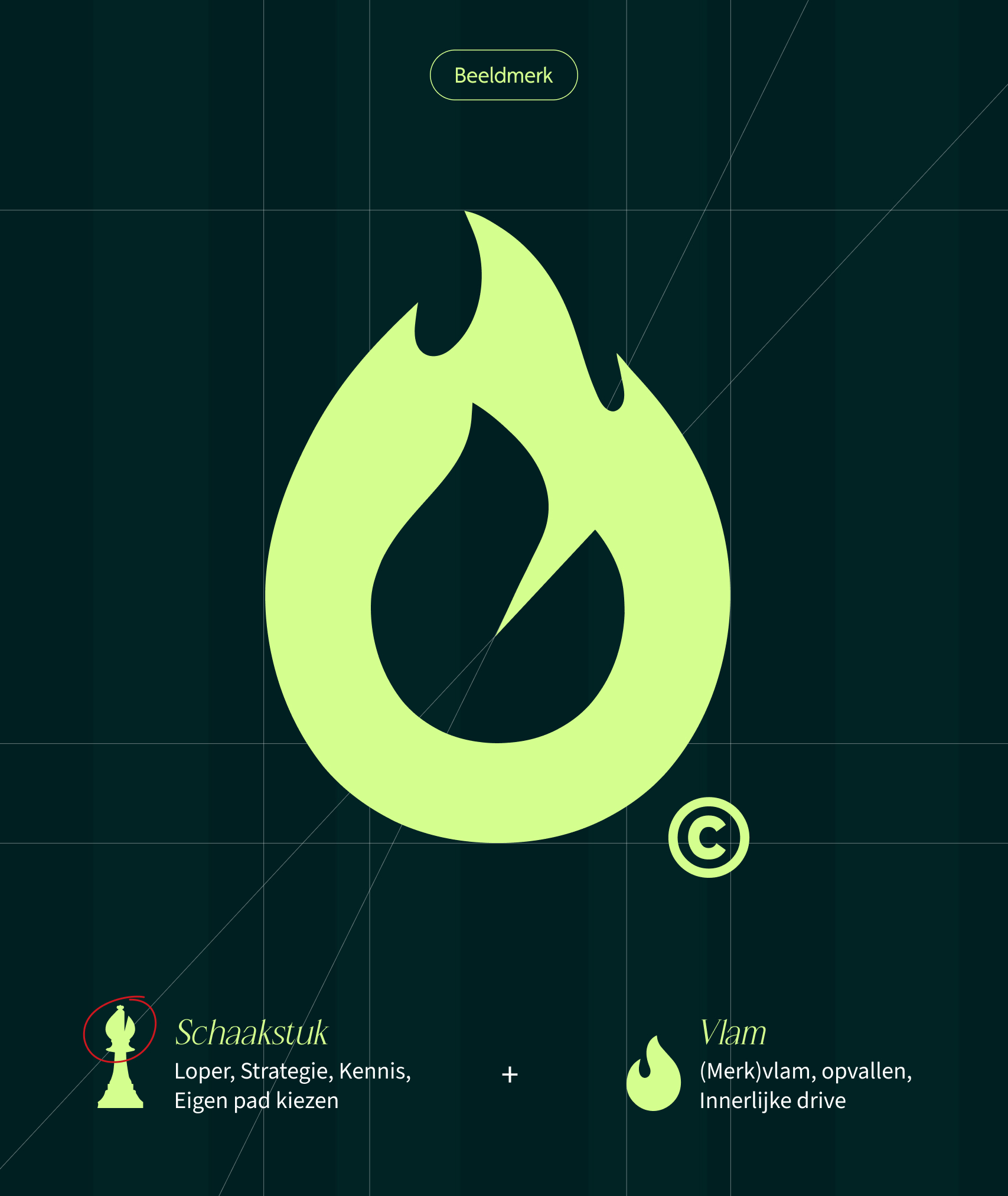 Voor het logo wilde ik onder andere de essentie van strategie en vooruitdenken vastleggen. Het beeldmerk laat een schaakstuk zien – de loper – als symbool voor strategie, inzicht en beweging. Dit wordt gecombineerd met een merkvlam, die kracht, energie en persoonlijke impact uitstraalt. Samen vormen deze elementen een herkenbaar en onderscheidend icoon dat de visie van HPBI weerspiegelt.